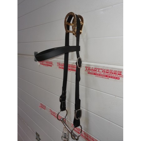Bride de présentation avec frontal en biothane ,le biotane est un composé synthétique de sangle polypropylène enrobé dans du polyuréthane thermoplastique , il offre une grande resistance aux coupures et à l'abrasion et une excellente flexibilité à basse temperature . il ne nécessite peux ou pas d'entretien .