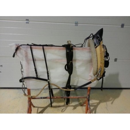 Traits réalisé en corde synthétique imputrescible diamètre 18mm , fourreau en cuir environ 40 cm sur l'avant des traits et terminaisons en chaines inox environ 30 cm .