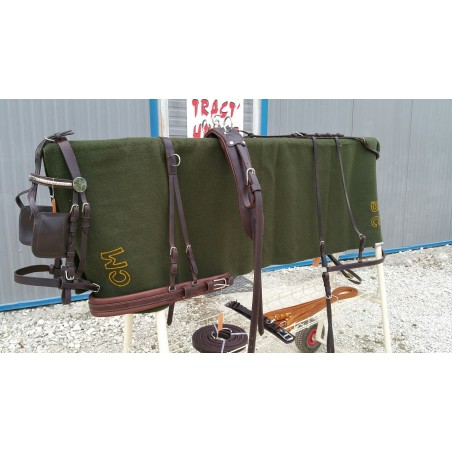 Tract Horse équipement vous propose un harnais d’attelage cuir promenade en simple complet composé d’une paire de guides couleur London. Il contient un bridon réglable avec oeillères et frontal en laiton ou en inox. La bricole possède un surcou non matelassé et deux descente de bricole .la bricole est matelassé, de chaque coté de la bricole sont disposés des boucles d’attache pour fixer les traits avec des boucleteaux à étranglement. Le harnais d’attelage cuir promenade en simple possède une sellette matelassée avec 2 clés de passage pour les guides et une clé centrale pour pose de lanière de mise au jockey. Le harnais d’attelage cuir promenade en simple est composé également d’une longue dossière équipée de rond de brancard, d’attache de sangle et de double sangle en cuir de qualité. Le harnais d’attelage cuir promenade en simple dispose d’une croupière et d’un culeron traditionnels avec une fente sur la croupière et un passage afin de faire coulisser les 2 barres de fesses supportant l’avaloire. Il possède aussi deux courroies de reculement. L’entreprise Tract Horse Équipement vous propose de vous poser 2 portes traits sur demande. Le harnais d’attelage cuir promenade en simple est disponible de la taille shetland à la taille cheval, il convient également pour les ânes et mules .