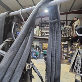 L’entreprise Tract Horse Équipement vous propose un harnais d’attelage synthétique doublé alvéolaire avec bricole droite en paire polypropylène grand confort pour atteler sur des calèches 4 roues avec 2 chevaux. Le harnais d’attelage polypropylène grand confort avec bricole droite en paire s’adapte à votre animal, allant de la taille shetland à la taille cheval de trait. Pour plus de précision notre entreprise Tract Horse Équipement vous propose un harnais sur mesure en prenant les cotes de votre cheval. Le harnais d’attelage synthétique doublé alvéolaire avec bricole droite en paire est en matière polypropylene doublé alvéolaire de grande qualité avec la bouclerie en acier nickelé. Vous pouvez choisir la couleur de votre harnais : le noir ou le havanne. La matière de ce harnais vous offre un gain de temps considérable concernant le nettoyage grâce à sa matière facile à entretenir mais aussi un gain d’argent grâce à son incroyable résistance et un transport facilité du à sa légèreté.