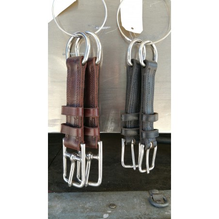 Les boucleteaux cuir viennent se positionner sur les terminaisons de traits entre le traits et le palonnier. Ils permettent la fixation à la calèche via un mousqueton de sécurité (non fournis) pris sur le palonnier, ils servent aussi à régler la longueur des traits. Les boucleteaux directs cuir conviennent pour les calèches 2 roues ou les calèches 4 roues modernes en attelage loisir et le plus souvent en compétition. Les boucleteaux direct s’adaptent aussi bien sur les harnais d’attelages en simple que sur les harnais d’attelages en paire.