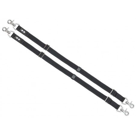 Ces supports élastiques réglables s'attachent sur la clé guide du surcou du brancardier d'un côté et sur le dé cousu sur les traits de volée de tandem de l'autre côté.