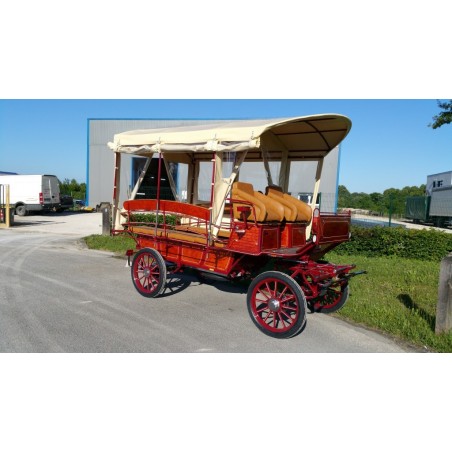 Calèche avec facilités d'accès pour personne à mobilité réduite. La calèche dispose de 12 places, idéale pour l'attelage professionnel en prestation de service.