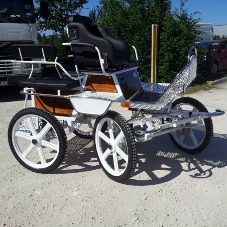 Voiture d'attelage hippomobile 4 places idéal pour le loisir et la randonnée.